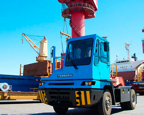 而為客戶定制的Terberg YT220也同樣令人眼前一亮。這臺YT 220根據客戶大噸位搬運需求,第五輪起升能力升級到45噸,GCW達到100噸,得益于Terberg的模塊化設計,YT 220還可以提供130噸的配置車型,滿足客戶業務發展的需求。