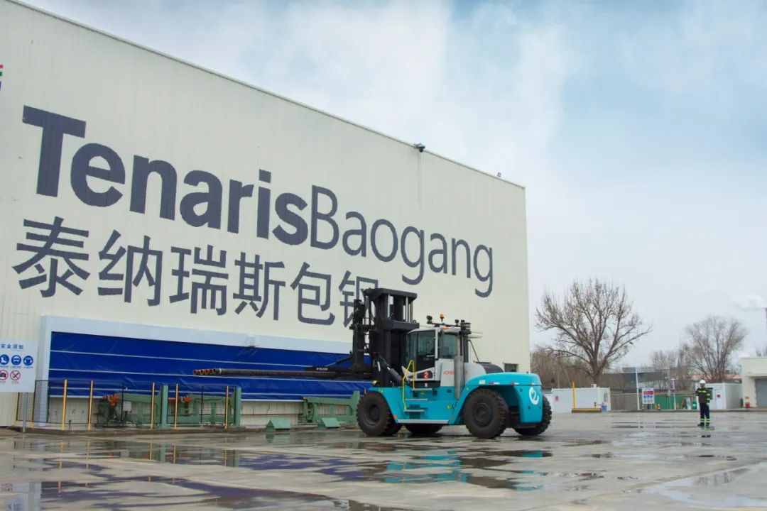 泰納瑞斯是一家來自盧森堡的跨國集團,該公司以無縫鋼管制造而聞名于世界。2020年,泰納瑞斯與包鋼正式牽手,成立泰納瑞斯包鋼(包頭)鋼管有限公司,為石油天然氣行業提供高性能油氣鉆采用特殊扣油套管,項目于2021年年底正式投產,并于同期購入兩臺科尼20噸重型叉車,用于鋼管搬運