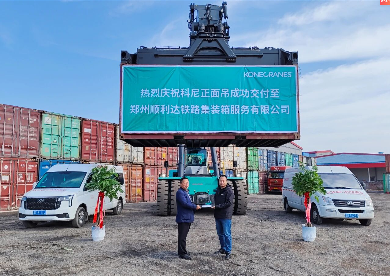 十月的鄭州秋高氣爽,科尼再掀訂單交付新篇章,一臺Liftace 4532 TCE5智能正面吊順利交付至鄭州順利達鐵路集裝箱服務有限公司(以下簡稱“鄭州順利達”)。該設備將用于廠區集裝箱裝卸、火車轉運等高強度作業場景,為客戶提供更安全的鐵路集裝箱運輸服務。